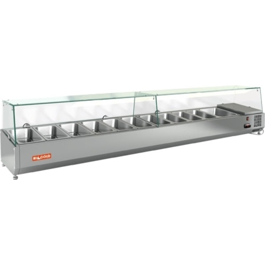Каталог оборудования Холодильное оборудованиеВитрины для ингредиентовВитрина холодильная для ингредиентов HICOLD VRTG 2360 к PZ3 (1/3) Витрина холодильная для ингредиентов HICOLD VRTG 2360 к PZ3 (1/3) Код товара: 064-659 Поделиться: WhatsAppTelegram СравнитьДобавить в КПВ избранное 0 89 578 ₽ В корзину 0 шт Под заказСамовывоз сегодня бесплатно Взять в кредит Купить в лизинг Получить консультацию в WhatsApp Описание Характеристики Отзывы 0 Инструкции 3 Витрина холодильная для ингредиентов HICOLD VRTG 2360 к PZ3 (1/3) предназначена для охлаждения, кратковременного хранения и демонстрации ингредиентов, салатов и готовых блюд на предприятиях общественного питания и торговли. Устанавливается на холодильные столы для пиццы серии PZ4 благодаря встроенным креплениям в нижней части корпуса. На фото показана аналогичная модель с настольной установкой. Ключевые особенности: Корпус из нержавеющей стали — долговечность, простота ухода. Электронная панель управления — точная регулировка температуры. Исполнение G — стеклянная надстройка для удобного обзора продуктов. Высота витрины — 459 мм — компактное размещение на рабочей поверхности. Вместимость: 10xGN1/3 + 1xGN1/2 — рациональная организация хранения (гастроёмкости приобретаются отдельно). Совместимые модели столов: PZ4-111/GN HICOLD VRTG 2360 к PZ3 (1/3)— это профессиональная настольная витрина, которая сочетает компактные размеры, современное управление и высокое качество охлаждения. Отличный выбор для пиццерий, ресторанов и кафе, где важны удобство доступа, скорость работы и эффектная подача продуктов.Изображение товара, представленного на фото, может отличаться от его фактического вида. Показать все Габаритные размеры2360×385×459 ммДиапазон рабочей температурыот +2 до +7 °CДлина2360 ммГлубина385 ммВысота459 ммТип крышкиСтеклянная Гастроемкостей11 штТип гастроемкостейGN1/3, GN1/2 Мощность0,15 ВтНапряжение220 ВТип охлажденияСтатическое Материал изготовленияНержавеющая сталь ХладагентR134 Вес нетто67 кгВес брутто107 кгТип оттайкиРучная Габариты в упаковке2460×485×559 ммБрендHicold Оставить отзыв Еще никто не оставил отзыв на этот товар Инструкция на HICOLD VRTG 2360 к PZ3.pdfСхема установки на стол.jpgДекларация о соответствии.pdf Похожие товары Перейти в каталог В наличии 57 879 ₽ Витрина холодильная для ингредиентов HICOLD VRTU 1970 1/4 Под заказ 59 662 ₽ Витрина холодильная для ингредиентов HICOLD VRTU 1915 к PZ4 (1/3) В наличии 82 699 ₽ Витрина холодильная для ингредиентов TEFCOLD VK38-120 В наличии 49 124 ₽ Витрина холодильная для ингредиентов HURAKAN HKN-VRX2000/380 Под заказ 49 135 ₽ Витрина холодильная для ингредиентов Tatra TVR1500-7GN1/4 Под заказ 61 986 ₽ Витрина для ингредиентов Carboma A40 SM 1,2-G (3 GN1/3+1 GN1/2) В наличии 51 291 ₽ Витрина холодильная для ингредиентов HICOLD VRTO 1485 1/3 Под заказ 56 799 ₽ Витрина холодильная для ингредиентов HICOLD VRTO 2010 С этим товаром покупают Под заказ 96 260 ₽ Шкаф холодильный универсальный Север ШХ-700 УН/ГЛ Под заказ 123 026 ₽ Шкаф морозильный Abat ШХн-0,5 Под заказ 241 810 ₽ Камера холодильная Polair КХН-14,49 (2260×3160×2460) 80 мм В наличии 121 807 ₽ Моноблок холодильный низкотемпературный Polair MB109T Под заказ 1 185 879 ₽ Сплит-система холодильная низкотемпературная Север BGSF 7249 S В наличии 318 935 ₽ Стол холодильный среднетемпературный TEFCOLD BK310 Под заказ 139 852 ₽ Стол морозильный HiCold SNE 111/BT W В наличии 311 571 ₽ Стол холодильный для пиццы HiCold PZE4-11/GN камень Ранее просмотрено В наличии 57 825 ₽ Витрина холодильная для ингредиентов HICOLD VRTU 1835 к PZ3 (1/3) Под заказ 72 729 