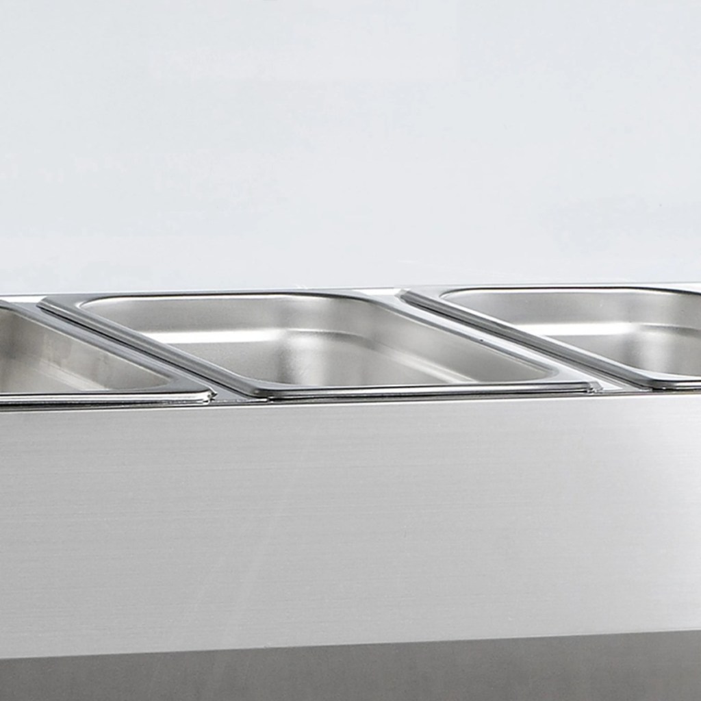 Каталог оборудования Холодильное оборудованиеВитрины для ингредиентовВитрина холодильная для ингредиентов TEFCOLD VK38-120 Витрина холодильная для ингредиентов TEFCOLD VK38-120 Код товара: 010-384 Поделиться: WhatsAppTelegram СравнитьДобавить в КПВ избранное 0 82 699 ₽ В корзину 0 шт В наличииСамовывоз сегодня бесплатно Взять в кредит Купить в лизинг Получить консультацию в Max Описание Характеристики Отзывы 0 Витрина холодильная для ингредиентов TEFCOLD VK38-120 предназначена для кратковременного хранения и демонстрации готовых салатов, мясных и рыбных закусок, а также ингредиентов на предприятиях общественного питания и торговли. Корпус и внутренняя обшивка выполнены из нержавеющей стали, что обеспечивает долговечность и легкость очистки. Гастроемкости в комплект не входят. Особенности: Статическое охлаждение — равномерное поддержание температуры для деликатных продуктов. Механическое размораживание — надежное удаление наледи без вмешательства пользователя. Хладагент R600a — экологичный и энергоэффективный. Электронный термостат и градусник — точная настройка и контроль температуры. Гнутый стеклянный колпак — обеспечивает обзор продукции и защиту от внешних воздействий. Регулируемые ножки — удобная установка и устойчивость на неровной поверхности. Климатический класс 4 — работа при температуре окружающей среды до +32°C. Вместимость — 4×GN 1/3 глубиной 150 мм, удобно для салатов и закусок. Перегородки — 3 длинных и 4 коротких для удобного разделения продуктов. Уровень шума — 47 дБ, почти бесшумная работа. Хладагент — 0,04 кг, эффективное охлаждение при минимальном расходе. Внутренние размеры — 845×305×155 мм, компактное размещение емкостей. TEFCOLD VK38-120 — компактная и надежная витрина для демонстрации и кратковременного хранения продуктов с безопасным поддержанием температурыИзображение товара, представленного на фото, может отличаться от его фактического вида. Показать все Габаритные размеры1200×395×435 ммДиапазон рабочей температурыот +2 до +10 °CДлина1200 ммГлубина395 ммВысота435 ммТип крышкиСтеклянная Гастроемкостей4 штТип гастроемкостейGN 1/3 Мощность0,112 ВтНапряжение220 ВТип охлажденияСтатическое Уровень шума47 дБКлиматический класс4 ХладагентR600a Вес нетто40 кгВес брутто45 кгТип оттайкиРучная Габариты в упаковке1280×440×310 ммБрендTefcold Оставить отзыв Еще никто не оставил отзыв на этот товар Похожие товары Перейти в каталог Под заказ Цена по запросу Витрина для ингредиентов Polair VT2-G (1/3) открытого типа Под заказ 60 350 ₽ Витрина для ингредиентов Polair VT2v-G (1/3) с подсветкой и защитным колпаком С этим товаром покупают В наличии 99 023 ₽ Стол холодильный среднетемпературный Polair ТМ2GN-G В наличии 161 242 ₽ Льдогенератор ICEMAKE ND 50 AS Под заказ 142 619 ₽ Шкаф холодильный МХМ Капри 1,5М нержавейка Ранее просмотрено Под заказ 3 856 ₽ ПВХ завеса Север 400х4 перекр. 50 мм