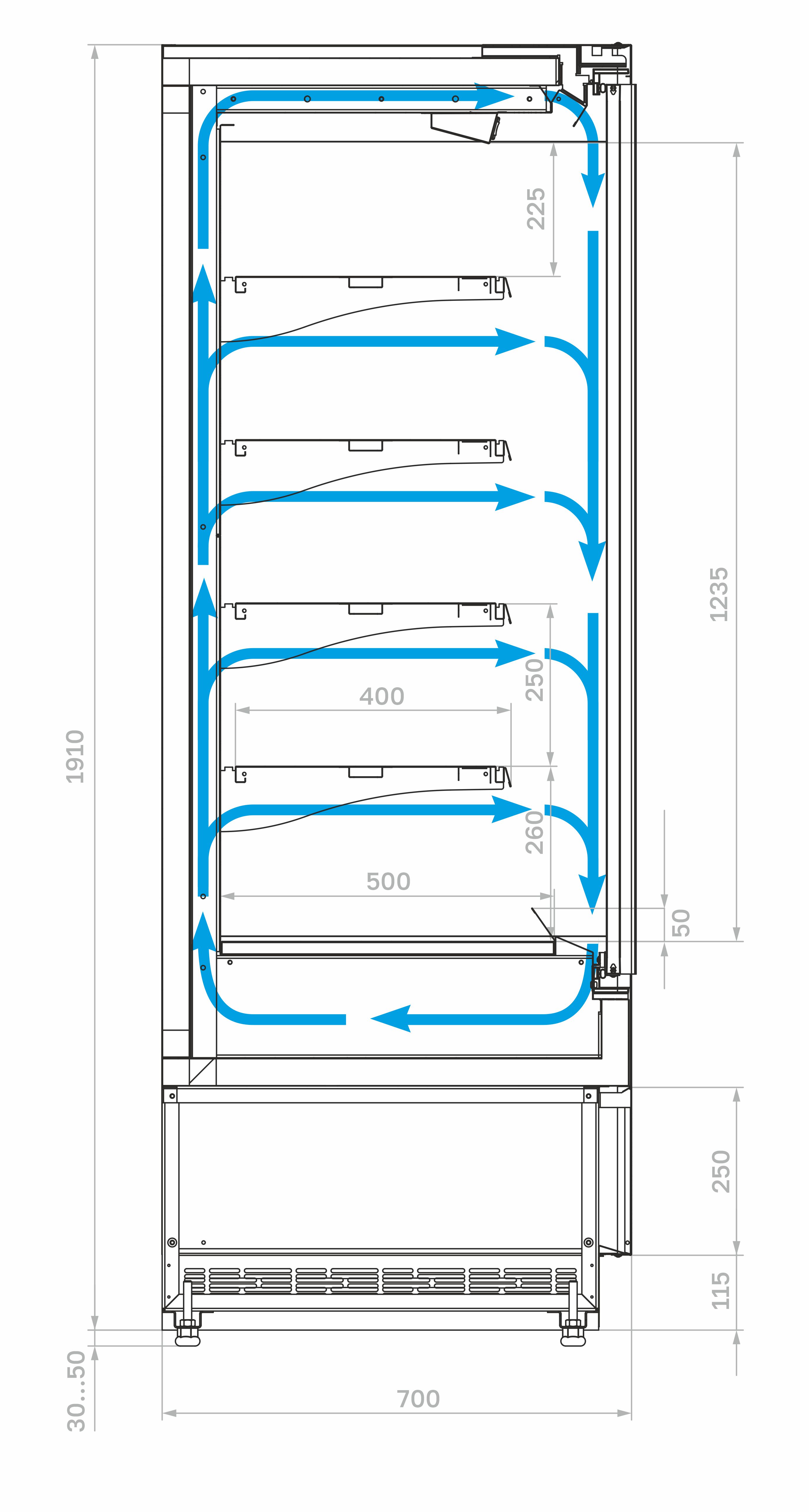 • Боковые панели с прозрачными стеклопакетами и дверь из низкоэмиссионного каленого стекла для энергосбережения и оптимального обзора продукции;