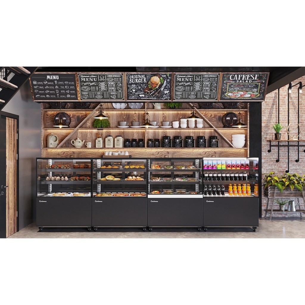 Carboma KC78-110 VV 1,5-1 (9005) — надёжная и функциональная витрина, обеспечивающая качественное охлаждение и привлекательную демонстрацию кондитерских изделий. Она сочетает современный дизайн с удобством эксплуатации, что делает её отличным выбором для предприятий общественного питания и торговли.