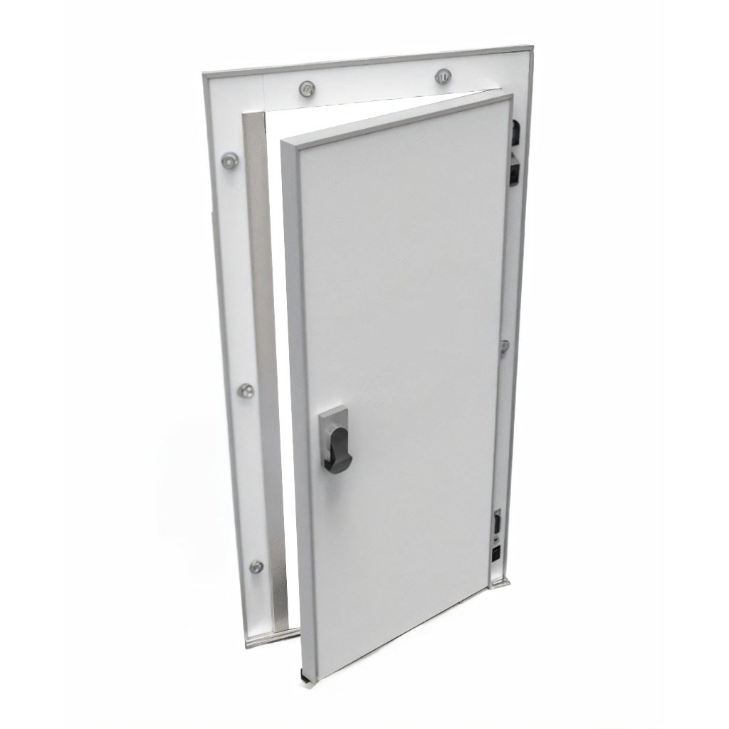 Каталог оборудования Холодильное оборудованиеДвери для холодильных камерРаспашные одностворчатые холодильные двериДверь холодильная распашная одностворчатая СТ-РДО-1200*2200/80 (с металлической рамой) Дверь холодильная распашная одностворчатая СТ-РДО-1200*2200/80 (с металлической рамой) Код товара: 065-866 Поделиться: WhatsAppTelegram СравнитьДобавить в КПВ избранное 0 42 252 ₽ В корзину 0 шт Под заказСамовывоз сегодня бесплатно Взять в кредит Купить в лизинг Получить консультацию в WhatsApp Описание Характеристики Отзывы 0 Инструкции 1 Дверь холодильная распашная одностворчатая СТ-РДО-1200*2200/80 (с металлической рамой) – это надежное и энергоэффективное решение для установки на предприятиях пищевой промышленности, в логистических центрах, на складах и терминалах. Дверь спроектирована для стабильной работы в условиях пониженных температур, что делает её оптимальным выбором для объектов с повышенными требованиями к сохранности продукции. В среднетемпературном исполнении СТ-80 дверь предназначена для эксплуатации при температурах до –5°. Особенности: Теплоизоляция: плита из пенополиуретана Dow Izolan высокой плотности (40–45 кг/м³) обеспечивает минимальные теплопотери, не содержит вредных хлорфторуглеродов и безопасна для пищевых производств. Пожаробезопасность: предел огнестойкости EI 15 позволяет использовать дверь в зонах с повышенными требованиями к безопасности. Конструкция: прочная рама из анодированного алюминия устойчива к коррозии, дверное полотно покрыто оцинкованной сталью толщиной 0,45–0,65 мм с полиэфирным слоем (RAL 9003), что обеспечивает долговечность и гигиеничность. Герметичность: двухконтурное резиновое уплотнение сотовой структуры на ПВХ-основе исключает мосты холода и обеспечивает надежное удержание температуры. Фурнитура: комплектуется надежной европейской фурнитурой. Замок оснащён системой аварийного открывания с флуоресцентной маркировкой, что исключает риск блокировки персонала внутри камеры. Холодильная дверь СТ-РДО-1200*2200/80 сочетает в себе прочность, долговечность и высокую энергоэффективность. Она гарантирует надежное сохранение температурного режима и безопасность эксплуатации, полностью соответствуя требованиям предприятий пищевой отрасли и объектов хранения.Изображение товара, представленного на фото, может отличаться от его фактического вида. Показать все Ширина светового проема1200 ммВысота светового проема2200 ммТемпературный режимСреднетемпературный (от -5 до +5) Толщина двери80 ммОткрываниеЛевое/Правое Замок с аварийным открываниемДа БрендСевер Оставить отзыв Еще никто не оставил отзыв на этот товар Буклет двери изотермические и технологические ТМ Север.pdf Ранее просмотрено Под заказ 51 094 ₽ Дверь холодильная распашная одностворчатая НТ-РДО-900*2200/120 (с металлической рамой)