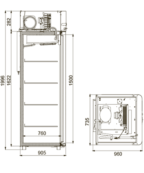Каталог оборудования Холодильное оборудованиеШкафы холодильныеШкафы морозильные низкотемпературные до -18 °СШкаф морозильный Polair Polair CB107-Gm Alu Шкаф морозильный Polair Polair CB107-Gm Alu Код товара: 062-591 Поделиться: WhatsAppTelegram СравнитьДобавить в КПВ избранное 0 165 920 ₽ В корзину 0 шт Под заказСамовывоз сегодня бесплатно Взять в кредит Купить в лизинг Получить консультацию в Max Описание Характеристики Отзывы 0 Инструкции 4 Шкаф морозильный Polair Polair CB107-Gm Alu разработан для демонстрации и надежного хранения продуктов на предприятиях общественного питания и торговли. Цельнозаливной корпус выполнен из нержавеющей стали как снаружи, так и внутри (кроме задней стенки), что гарантирует высокую прочность и долговечность конструкции. Алюминиевые профили дверей и верхней панели подчеркивают современный и премиальный внешний вид шкафа. Оборудование рассчитано на работу при температуре окружающей среды до +40 °С и относительной влажности воздуха до 80%, что делает его надежным решением даже в сложных условиях эксплуатации. Основные особенности: Многофункциональная контрольная панель с жидкокристаллическим дисплеем Верхнее расположение агрегата, обеспечивающее удобный доступ к внутреннему объему Поддержка дистанционного мониторинга и записи данных в журнал контроллера (при использовании сетевой карты), а также передача данных через Bluetooth Клапан Шредера и компенсационный клапан с ПЭНом обогрева ПЭН обогрева трубки слива конденсата и ПЭН обогрева дверного проема для предотвращения образования наледи Распашные двери с полностью интегрированными ручками и эластичными магнитными уплотнителями, обеспечивающими максимальную герметизацию Микропереключатель, отключающий вентилятор и включающий подсветку при открытии дверей Встроенная внутренняя подсветка, улучшающая обзор содержимого Регулируемые по высоте ножки и педаль для удобного открывания двери Замок для обеспечения безопасности хранения 4 полки формата GN 2/1 (530×650 мм) с допустимой нагрузкой до 40 кг Толщина теплоизоляции корпуса — 61 мм Изображение товара, представленного на фото, может отличаться от его фактического вида. Показать все Габаритные размеры735×945×1996 ммДиапазон рабочей температурыдо -18 °CДлина735 ммГлубина450 ммВысота1996 ммОбъём700 лМатериал корпусаНержавеющая сталь Тип охлажденияДинамическое Тип управленияМеханическое Расход электроэнергии в сутки12 кВтКоличество полок2 штКоличество дверей1 штЗамокЕсть Тип двериМеталлическая Способ открыванияРаздвижные (купе) Напряжение220 ВХладагентR290 Расположение агрегатаНижнее Габариты в упаковке850×988×2160 ммВес нетто128 кгВес брутто152 кгБрендPolairВсе шкафы морозильные низкотемпературные до -18 °С POLAIRВсе шкафы морозильные низкотемпературные до -18 °С 4 уровня Оставить отзыв Еще никто не оставил отзыв на этот товар Схема POLAIR CB107-Gm Alu.jpgИнструкция на POLAIR CB107-Gm Alu.pdfДекларация о соответствии.pdfСертификат соответствия.pdf Похожие товары Перейти в каталог В наличии 87 667 ₽ Шкаф морозильный для икры и пресервов Polair DP107-S Под заказ 107 942 ₽ Шкаф морозильный Рапсодия R 700 LS В наличии 123 126 ₽ Шкаф морозильный МХМ Капри 0,5НСК В наличии 79 201 ₽ Шкаф морозильный HURAKAN HKN-RFS600 В наличии 125 781 ₽ Шкаф холодильный низкотемпературный Arkto F0.5-G Под заказ 176 674 ₽ Шкаф морозильный Tatra TRC700 BT G Под заказ 242 105 ₽ Шкаф морозильный с глухой дверью TEFCOLD RF505 нержавеющий В наличии 140 854 ₽ Шка