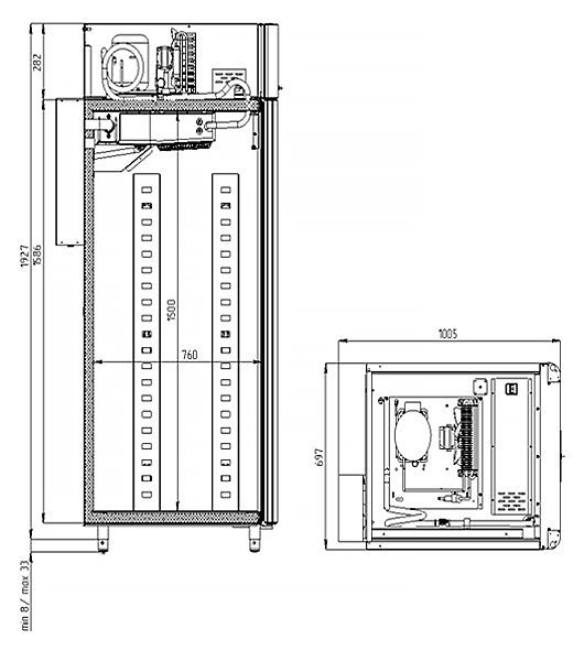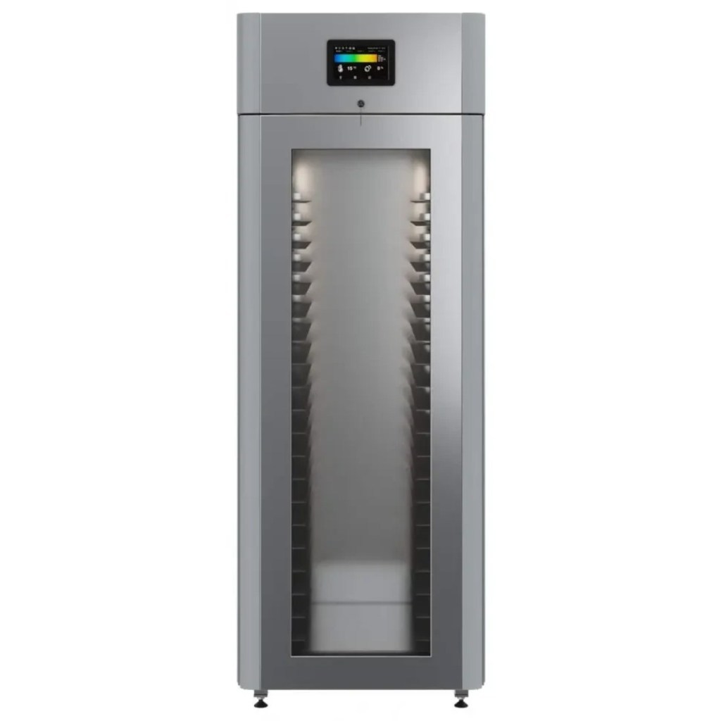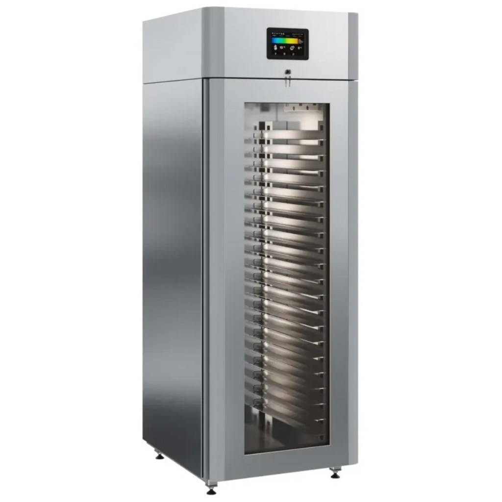 Каталог оборудования Холодильное оборудованиеШкафы холодильныеСпециализированные холодильные шкафыШкаф холодильный для хлебопекарных производств Polair CS107-Bakery Br со стеклом (Тип 2) Шкаф холодильный для хлебопекарных производств Polair CS107-Bakery Br со стеклом (Тип 2) Код товара: 062-623 Поделиться: WhatsAppTelegram СравнитьДобавить в КПВ избранное 0 419 900 ₽ В корзину 0 шт Под заказСамовывоз сегодня бесплатно Взять в кредит Купить в лизинг Получить консультацию в WhatsApp Описание Характеристики Отзывы 0 Инструкции 5 Шкаф холодильный для хлебопекарных производств Polair CS107-Bakery Br со стеклом (Тип 2) предназначен для создания оптимальных условий хранения и расстойки заготовок из теста на предприятиях общественного питания и торговли. Корпус цельнозаливной, выполнен из нержавеющей стали, дверь — стеклопакет. Оборудование стабильно работает при температуре окружающей среды до +40 °C. В комплект входят 20 пар направляющих размером 400×600 мм. Особенности: Многофункциональные режимы: охлаждение тестовых заготовок, замедление ферментации, хранение, регенерация, брожение и расстойка Динамическое охлаждение с мягким обдувом без заветривания и автоматическая оттайка с системой испарения конденсата Панель управления с 7" дисплеем: контроль температуры, влажности (регулируется от 60 до 95 %), скорости вентилятора и времени, возможность создания и сохранения собственных программ Встроенный ультразвуковой увлажнитель (требуется подключение к системе водоочистки и канализации) Эргономичная конструкция: верхнее расположение агрегата, распашная дверь со стеклопакетом и механизмом самозакрывания, педаль для удобного открытия, съёмные направляющие и легко заменяемый уплотнитель с магнитной вставкой Простота ухода: штампованное углубление в дне корпуса для сбора загрязнений Экологичный хладагент R290 Энергоэффективность: потребляемая мощность — 0,55 кВт (охлаждение), 0,9 кВт (нагрев) Толщина стенки корпуса — 43 мм Polair CS107-Bakery Br со стеклом (Тип 2) — современный шкаф отложенной расстойки, обеспечивающий полный контроль и гибкость при работе с тестовыми заготовками. Благодаря многофункциональным режимам, точной настройке параметров и продуманной конструкции, он становится надёжным решением для пекарен и кондитерских, стремящихся к высокому качеству продукции и удобству в эксплуатации.Изображение товара, представленного на фото, может отличаться от его фактического вида. Показать все Габаритные размеры697×1005×1960 ммДиапазон рабочей температурыот -10 до +40 °CДлина697 ммШирина1005 ммВысота1960 ммОбъём700 лКол-во дверей1 Тип двериСтеклянная Уровень влажностиот 60 до 95 %Направляющие под EN 40*6020 Расстояние между направляющими60 ммХолодильный агрегатВстроенный Тип оттайкиАвтоматическая Тип охлажденияДинамический ПодсветкаЕсть ХладагентR290 Вес нетто180 кгВес брутто205 кгБрендPolairВсе специализированные холодильные шкафы Из нержавейки Оставить отзыв Еще никто не оставил отзыв на этот товар Схема POLAIR CS107 Bakery Br.jpgИнструкция на POLAIR CS107 Bakery Br.pdfБрошюра на хлебопекарное оборудование POLAIR.pdfДекларация о соответствии.pdfСертификат соответствия.pdf Похожие товары Перейти в каталог Под заказ 399 500 ₽ Шкаф холодильный для вызревания мяса Polair CS107 Meat со стеклом (Тип 1) Под заказ 405 450 ₽ Шкаф холодильный для хлебопекарных производств Polair CS107 Bakery Br черный, со стеклом (Тип 1) Под заказ 207 942 ₽ Шкаф холодильный HURA