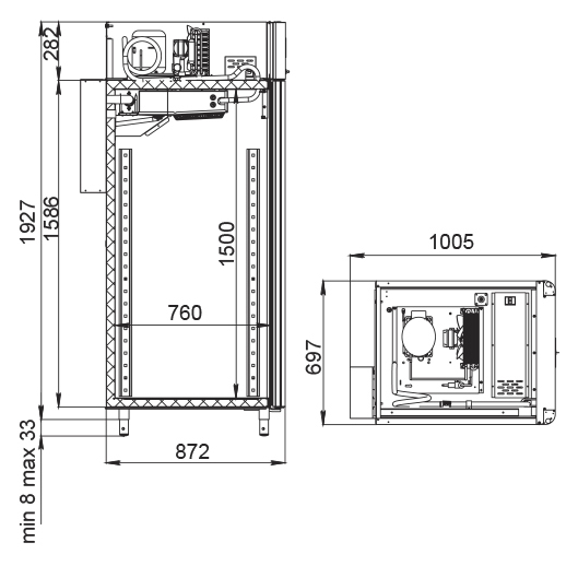 Каталог оборудования Холодильное оборудованиеШкафы холодильныеСпециализированные холодильные шкафыШкаф холодильный для вызревания сыра Polair CS107 Cheese полки нерж. Шкаф холодильный для вызревания сыра Polair CS107 Cheese полки нерж. Код товара: 062-628 Поделиться: WhatsAppTelegram СравнитьДобавить в КПВ избранное 0 391 000 ₽ В корзину 0 шт Под заказСамовывоз сегодня бесплатно Взять в кредит Купить в лизинг Получить консультацию в WhatsApp Описание Характеристики Отзывы 0 Инструкции 5 Шкаф холодильный для вызревания сыра Polair CS107 Cheese полки нерж. предназначен для создания оптимальных условий хранения и дозревания твердых и полутвердых сыров на предприятиях общественного питания и торговли. Монолитный цельнозаливной корпус выполнен из нержавеющей стали снаружи и изнутри (кроме задней стенки), что обеспечивает высокую механическую прочность и долговечность шкафа. Оборудование рассчитано на работу при температуре окружающей среды до 40 °С. Особенности: Верхнее расположение агрегата Многофункциональная русифицированная контрольная панель с 5-дюймовым дисплеем Возможность создания и сохранения собственных программ в памяти электронного блока Четыре перфорированные полки из нержавеющей стали Встроенный ультразвуковой увлажнитель (требуется подключение к системе подачи очищенной воды и централизованной канализации) Распашная дверь с заливной теплоизоляцией Заменяемый уплотнитель двери с магнитной вставкой Встроенная ручка для удобства открытия Отключаемая внутренняя LED-подсветка Штампованное углубление в дне корпуса для облегчения ухода Надежный замок Педаль для бесконтактного открывания двери Регулировка уровня влажности от 60% до 95% Максимальная нагрузка на каждую полку — 40 кг Толщина стенок корпуса — 43 мм Polair CS107 Cheese полки нерж. — это современный и надежный холодильный шкаф, который обеспечивает идеальные условия для хранения и дозревания твердых и полутвердых сыров. Прочный корпус, точное управление влажностью и температурой, а также удобство эксплуатации делают его отличным решением для предприятий общественного питания и торговли, стремящихся сохранить качество и вкусовые свойства сырной продукции.Изображение товара, представленного на фото, может отличаться от его фактического вида. Показать все Габаритные размеры697×1005×1960 ммДиапазон рабочей температурыот -2 до +30 °CДлина697 ммШирина1005 ммВысота1960 ммОбъём700 лКол-во дверей1 Тип двериМеталлическая Количество полок4 штДопустимая нагрузка на полку40 кгУровень влажностиот 60 до 95 %Холодильный агрегатВстроенный Тип оттайкиАвтоматическая Тип охлажденияДинамическое ПодсветкаЕсть ХладагентR290 Вес нетто144 кгВес брутто171 кгБрендPolairВсе специализированные холодильные шкафы Из нержавейки Оставить отзыв Еще никто не оставил отзыв на этот товар Схема POLAIR CS107 Cheese.jpgИнструкция на POLAIR CS107 Cheese.pdfБрошюра на POLAIR CS107 Cheese.pdfДекларация о соответствии.pdfСертификат соответствия.pdf Похожие товары Перейти в каталог Под заказ 248 490 ₽ Шкаф холодильный для вызревания мяса и сыра Carboma M700GN-1-G-MHC 9006 Под заказ 402 050 ₽ Шкаф холодильный для вызревания мяса Polair CS107 Meat со стеклом (Тип 2) Под заказ 373 915 ₽ Шкаф холодильный для вызревания салями Polair CS107 Salami черный, со стеклом Под заказ 399 500 ₽ Шкаф холодильный для вызревания мяса Polair CS107 Meat со стеклом (Тип 1) Под заказ 207 942 ₽ Шкаф холодильный HURAKAN HKN-MA350 для созревания мяса Под зака