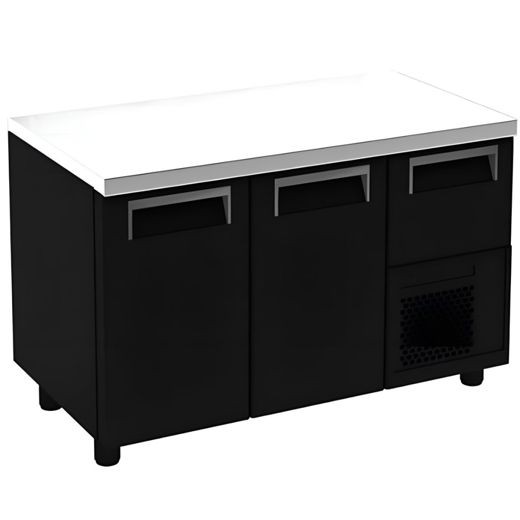Стол холодильный барный Carboma T57 M2-1-G 9005-19 корпус черный, без борта, планка (BAR-250С) предназначен для раскатки теста, подготовки ингредиентов, охлаждения и кратковременного хранения скоропортящихся продуктов и напитков на предприятиях общественного питания и торговли.