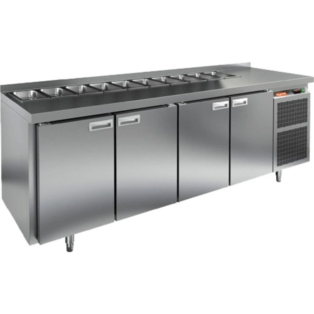 Каталог оборудования Холодильное оборудованиеСтолы охлаждаемыеСтолы холодильные для салатовСтол холодильный для салатов HiCold SL1-1111SN без крышки Стол холодильный для салатов HiCold SL1-1111SN без крышки Код товара: 064-515 Поделиться: WhatsAppTelegram СравнитьДобавить в КПВ избранное 0 191 962 ₽ В корзину 0 шт Под заказСамовывоз сегодня бесплатно Взять в кредит Купить в лизинг Получить консультацию в WhatsApp Описание Характеристики Отзывы 0 Инструкции 2 Стол холодильный для салатов HiCold SL1-1111SN без крышки предназначен для предприятий общественного питания и торговли. Он обеспечивает хранение и подготовку ингредиентов для пиццы, салатов и других блюд, а также охлаждение и кратковременное хранение скоропортящихся продуктов. Модель сочетает рабочую поверхность и холодильный объем, позволяя повару иметь все необходимые компоненты под рукой. Корпус и столешница выполнены из нержавеющей стали, обеспечивая надежность и долговечность. Особенности: Динамическая система охлаждения — равномерное распределение температуры внутри холодильного объема. Автоматическая оттайка — упрощает уход за оборудованием. Электронная панель управления — точная настройка температуры и режимов работы. 4 вместительные внутренние полки формата GN 1/1 — удобное хранение ингредиентов. Автоматические доводчики дверей с фиксатором открытого положения — комфорт и безопасность работы. Легкозаменяемые магнитные уплотнители — простота обслуживания. Открытая агрегатная часть — облегчает доступ для обслуживания. Регулируемые по высоте ножки — адаптация к рабочей поверхности. Столешница с бортом, толщина столешницы и теплоизоляции 50 мм — надежная защита и удобство работы. Размер полки: 430×325мм (GN 1/1) Максимальная глубина гастроемкостей: 100 мм HiCold SL1-1111SN без крышки — многофункциональный и надежный стол для профессиональной кухни. Обеспечивает удобство работы, эффективное охлаждение и безопасное хранение продуктов. Идеально подходит для ресторанов, кафе и пиццерий, где важны скорость работы и качество хранения ингредиентов.Изображение товара, представленного на фото, может отличаться от его фактического вида. Показать все Габаритные размеры2280×600×850 ммДиапазон рабочей температурыот +2 до +10 °CРасположение агрегатаБоковое Материал столешницыНержавеющая Тип столаС дверьми Тип двериГлухая Объём570 лКоличество дверей4 штТип гастроемкостейGN 1/3 Размер полки430×325 ммНапряжение220 ВМощность0,48 кВтТип охлажденияДинамический Тип оттайкиАвтоматическая СтолешницаС бортом Вес нетто143 кгВес брутто163 кгБрендHicold Оставить отзыв Еще никто не оставил отзыв на этот товар Паспорт на HICOLD SL1-1111SN.pdfДекларация о соответствии.pdf Ранее просмотрено Под заказ 164 961 ₽ Стол холодильный для салатов HiCold SL2-11SN (1/6) М с крышкой Под заказ 121 491 ₽ Стол холодильный для салатов HiCold SLE2-11GN (1/6) O без крышки Под заказ 294 562 ₽ Стол холодильный для салатов HiCold SLE1-2222GN (1/3) с крышкой Под заказ 239 032 ₽ Стол холодильный для салатов HiCold SLE2-222GN (1/6) О с крышкой Под заказ 243 982 ₽ Стол холодильный для салатов HiCold SL2-321GN (1/6) с крышкой Под заказ 123 742 ₽ Стол холодильный для салатов HiCold SLE1-11SN (1/3) О с крышкой Под заказ 172 161 ₽ Стол холодильный для салатов HiCold SLE1-11111GN (1/3) О с крышкой