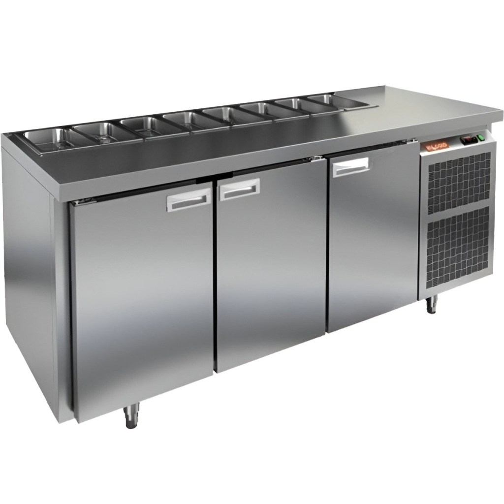 Каталог оборудования Холодильное оборудованиеСтолы охлаждаемыеСтолы холодильные для салатовСтол холодильный для салатов HiCold SL1-111SN (1/3) О без крышки Стол холодильный для салатов HiCold SL1-111SN (1/3) О без крышки Код товара: 064-522 Поделиться: WhatsAppTelegram СравнитьДобавить в КПВ избранное 0 163 162 ₽ В корзину 0 шт Под заказСамовывоз сегодня бесплатно Взять в кредит Купить в лизинг Получить консультацию в WhatsApp Описание Характеристики Отзывы 0 Инструкции 2 Стол холодильный для салатов HiCold SL1-111SN (1/3) О без крышки предназначен для предприятий общественного питания и торговли. Он обеспечивает хранение и подготовку ингредиентов для пиццы, салатов и других блюд, а также охлаждение и кратковременное хранение скоропортящихся продуктов. Модель сочетает рабочую поверхность и холодильный объем, позволяя повару иметь все необходимые компоненты под рукой. Корпус и столешница выполнены из нержавеющей стали, обеспечивая надежность и долговечность. Особенности: Динамическая система охлаждения — равномерное распределение температуры внутри холодильного объема. Автоматическая оттайка — упрощает уход за оборудованием. Электронная панель управления — точная настройка температуры и режимов работы. 3 вместительные внутренние полки формата GN 1/1 — удобное хранение ингредиентов. Автоматические доводчики дверей с фиксатором открытого положения — комфорт и безопасность работы. Легкозаменяемые магнитные уплотнители — простота обслуживания. Открытая агрегатная часть — облегчает доступ для обслуживания. Регулируемые по высоте ножки — адаптация к рабочей поверхности. Столешница без борта и без крышки, толщина столешницы и теплоизоляции 50 мм — надежная защита и удобство работы. Размер полки: 430×320мм (GN 1/1) Максимальная глубина гастроемкостей: 100 мм HiCold SL1-111SN (1/3) О без крышки — многофункциональный и надежный стол для профессиональной кухни. Обеспечивает удобство работы, эффективное охлаждение и безопасное хранение продуктов. Мобильная модификация с колёсами позволяет легко перемещать стол, что делает его идеальным для ресторанов, кафе и пиццерий.Изображение товара, представленного на фото, может отличаться от его фактического вида. Показать все Габаритные размеры1835×600×850 ммДиапазон рабочей температурыот +2 до +10 °CРасположение агрегатаБоковое Материал столешницыНержавеющая Тип столаС дверьми Тип двериГлухая Объём435 лКоличество дверей3 штТип гастроемкостейGN 1/3 Размер полки430×320 ммНапряжение220 ВМощность0,46 кВтТип охлажденияДинамический Тип оттайкиАвтоматическая СтолешницаБез борта Вес нетто120 кгВес брутто183 кгБрендHicold Оставить отзыв Еще никто не оставил отзыв на этот товар Паспорт на HICOLD SL1-111SN О.pdfДекларация о соответствии.pdf Ранее просмотрено Под заказ 163 612 ₽ Стол холодильный для салатов HiCold SL1-111GN (1/3) О без крышки В наличии 140 122 ₽ Стол холодильный для салатов HiCold SL1-11GN (1/3) без крышки Под заказ 192 411 ₽ Стол холодильный для салатов HiCold SL1-1111GN (1/3) без крышки Под заказ 149 302 ₽ Стол холодильный для салатов HiCold SLE2-111GN (1/6) О З без крышки Под заказ 320 392 ₽ Стол холодильный для салатов HiCold SL1-2222GN (1/3) с крышкой Под заказ 170 901 ₽ Стол холодильный для салатов HiCold SLE3-111GN полипропилен, без крышки Под заказ 197 991 ₽ Стол холодильный для салатов HiCold SL1-1111GN (1/3) О с крышкой