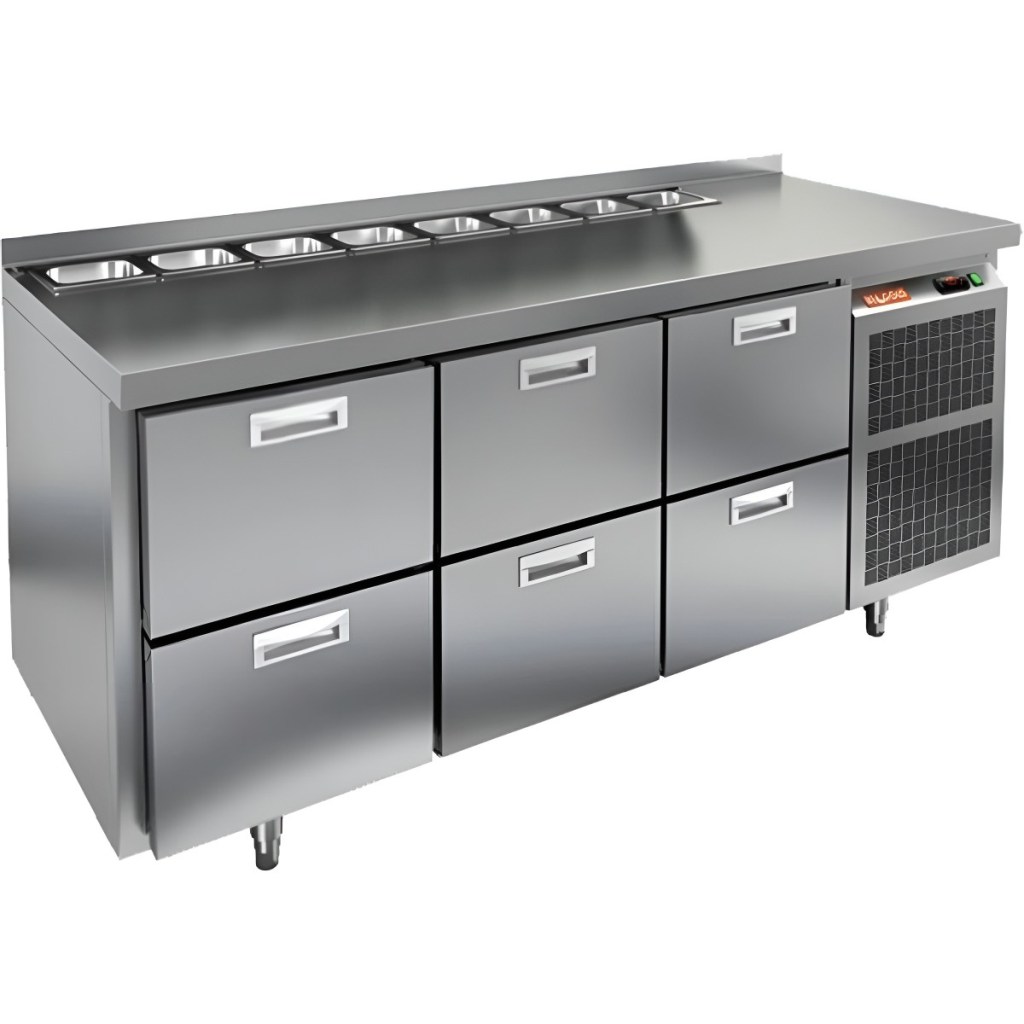 Каталог оборудования Холодильное оборудованиеСтолы охлаждаемыеСтолы холодильные для салатовСтол холодильный для салатов HiCold SL1-222GN (1/3) без крышки Стол холодильный для салатов HiCold SL1-222GN (1/3) без крышки Код товара: 064-845 Поделиться: WhatsAppTelegram СравнитьДобавить в КПВ избранное 0 255 412 ₽ В корзину 0 шт Под заказСамовывоз сегодня бесплатно Взять в кредит Купить в лизинг Получить консультацию в WhatsApp Описание Характеристики Отзывы 0 Инструкции 1 Стол холодильный для салатов HiCold SL1-222GN (1/3) без крышки предназначен для использования на предприятиях общественного питания и торговли. Он объединяет рабочую поверхность и охлаждаемый отсек, что делает его удобным решением для хранения, охлаждения и подготовки ингредиентов при приготовлении салатов, пиццы и других блюд. Такая конструкция позволяет повару работать быстрее и эффективнее, так как все необходимые продукты находятся под рукой. Корпус и столешница выполнены из прочной нержавеющей стали, устойчивой к коррозии и легко поддающейся санитарной обработке. Особенности модели: Электронная панель управления — точная настройка температурного режима. 6 выдвижных ящика — быстрое размещение и замена продуктов. Вместимость салат-бара — до 8 гастроемкостей глубиной до 100 мм. Автоматические доводчики дверей с фиксацией в открытом положении. Легкозаменяемые магнитные уплотнители — надежная герметичность. Открытая агрегатная часть — быстрый доступ для обслуживания. Регулируемые по высоте ножки — устойчивость даже на неровном полу. Толщина столешницы, борта и теплоизоляции — 50 мм, что обеспечивает прочность и энергоэффективность конструкции. HiCold SL1-222GN (1/3) бзе крышки — практичное и удобное решение для профессиональной кухни, обеспечивающее удобную подготовку и хранение ингредиентов.Изображение товара, представленного на фото, может отличаться от его фактического вида. Показать все Габаритные размеры1835×700×850 ммДиапазон рабочей температурыот +2 до +10 °CРасположение агрегатаБоковое Материал столешницыНержавеющая Тип столаС ящиками Объём505 лТип гастроемкостейGN 1/3 Количество ящиков6 штНапряжение220 ВМощность0,46 кВтТип охлажденияДинамическое Тип оттайкиАвтоматическая СтолешницаС бортом Габариты в упаковке2000×850×1000 ммВес нетто120 кгВес брутто140 кгБрендHicold Оставить отзыв Еще никто не оставил отзыв на этот товар Декларация о соответствии.pdf Ранее просмотрено В наличии 561 624 ₽ Шкаф шоковой заморозки Polair CRt20-L Под заказ 148 402 ₽ Стол холодильный для салатов HiCold SL1-11GN (1/3) О З с крышкой