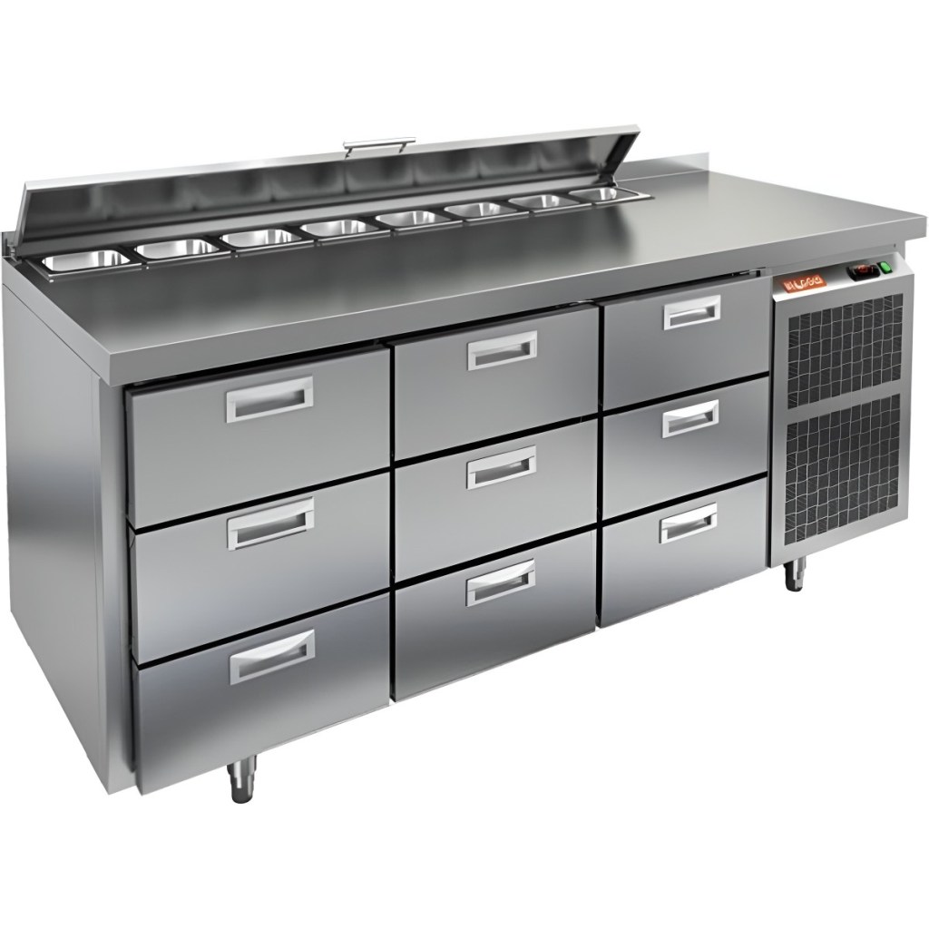 Каталог оборудования Холодильное оборудованиеСтолы охлаждаемыеСтолы холодильные для салатовСтол холодильный для салатов HiCold SL1-333GN (1/3) с крышкой Стол холодильный для салатов HiCold SL1-333GN (1/3) с крышкой Код товара: 064-847 Поделиться: WhatsAppTelegram СравнитьДобавить в КПВ избранное 0 305 992 ₽ В корзину 0 шт Под заказСамовывоз сегодня бесплатно Взять в кредит Купить в лизинг Получить консультацию в WhatsApp Описание Характеристики Отзывы 0 Стол холодильный для салатов HiCold SL1-333GN (1/3) предназначен для использования на предприятиях общественного питания и торговли. Он объединяет рабочую поверхность и охлаждаемый отсек, что делает его удобным решением для хранения, охлаждения и подготовки ингредиентов при приготовлении салатов, пиццы и других блюд. Такая конструкция позволяет повару работать быстрее и эффективнее, так как все необходимые продукты находятся под рукой. Корпус и столешница выполнены из прочной нержавеющей стали, устойчивой к коррозии и легко поддающейся санитарной обработке.Металлическая крышка защищает продукты от загрязнений и сохраняет их свежесть. Особенности модели: Электронная панель управления — точная настройка температурного режима. 9 выдвижных ящика — быстрое размещение и замена продуктов. Вместимость салат-бара — до 8 гастроемкостей глубиной до 100 мм. Автоматические доводчики — комфорт при загрузке/выгрузке. Легкозаменяемые магнитные уплотнители — надежная герметичность. Открытая агрегатная часть — быстрый доступ для обслуживания. Регулируемые по высоте ножки — устойчивость даже на неровном полу. Толщина столешницы, борта и теплоизоляции — 50 мм, что обеспечивает прочность и энергоэффективность конструкции. HiCold SL1-333GN (1/3) — практичное и удобное решение для профессиональной кухни, обеспечивающее удобную подготовку и хранение ингредиентов. Изображение товара, представленного на фото, может отличаться от его фактического вида. Показать все Габаритные размеры1835×700×850 ммДиапазон рабочей температурыот +2 до +10 °CРасположение агрегатаБоковое Материал столешницыНержавеющая Тип столаС ящиками Объём505 лТип гастроемкостейGN 1/3 Количество ящиков9 штНапряжение220 ВМощность0,46 кВтТип охлажденияДинамическое Тип оттайкиАвтоматическая СтолешницаС бортом Габариты в упаковке2000×850×1000 ммВес нетто130 кгВес брутто185 кгБрендHicold Оставить отзыв Еще никто не оставил отзыв на этот товар Ранее просмотрено Под заказ 140 482 ₽ Стол холодильный для салатов HiCold SL2-11GN (1/6) О без крышки Под заказ 170 901 ₽ Стол холодильный для салатов HiCold SLE3-111GN полипропилен, без крышки Под заказ 197 991 ₽ Стол холодильный для салатов HiCold SL1-1111GN (1/3) О с крышкой Под заказ 103 041 ₽ Стол холодильный для салатов HiCold SLE3-1GN полипропилен, без крышки Под заказ 166 221 ₽ Стол холодильный для салатов HiCold SL1-11GN (1/3) О М с крышкой Под заказ 140 301 ₽ Стол холодильный для салатов HiCold SLE3-11GN полипропилен, с крышкой Под заказ 133 281 ₽ Стол холодильный для салатов HiCold SLE3-11GN полипропилен, без крышки