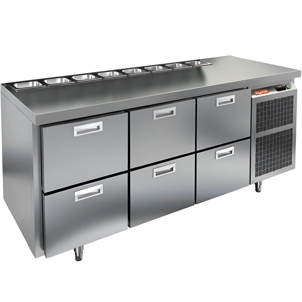Каталог оборудования Холодильное оборудованиеСтолы охлаждаемыеСтолы холодильные для салатовСтол холодильный для салатов HiCold SL2-222GN (1/6) О без крышки Стол холодильный для салатов HiCold SL2-222GN (1/6) О без крышки Код товара: 064-818 Поделиться: WhatsAppTelegram СравнитьДобавить в КПВ избранное 0 255 861 ₽ В корзину 0 шт Под заказСамовывоз сегодня бесплатно Взять в кредит Купить в лизинг Получить консультацию в WhatsApp Описание Характеристики Отзывы 0 Инструкции 1 Стол холодильный для салатов HiCold SL2-222GN (1/6) О без крышки предназначен для использования на предприятиях общественного питания и торговли. Он подходит для хранения, обработки и кратковременного охлаждения ингредиентов, применяемых при приготовлении пиццы, салатов, закусок и других блюд. Модель совмещает охлаждаемый объем и рабочую поверхность, что значительно повышает удобство и скорость работы персонала. Корпус и столешница выполнены из прочной и гигиеничной нержавеющей стали, устойчивой к влаге, загрязнениям и механическим повреждениям. Особенности модели: Электронная панель управления — точная настройка температуры. Салат-бар на 8 гастроемкостей — быстрый доступ к ингредиентам. 6 внутренних ящиков — удобное размещение и легкая замена продуктов. Автоматические доводчики дверей — комфортная эксплуатация. Съёмные магнитные уплотнители — герметичность и стабильная температура. Открытая агрегатная часть — лёгкое обслуживание. Регулируемые ножки — установка на любой поверхности. Глубина гастроемкостей до 150 мм, столешница и теплоизоляция — 50 мм. HiCold SL2-222GN (1/6) О без крышки — универсальное и функциональное решение для профессиональной кухни, позволяющее оптимизировать рабочие процессы и повысить производительность за счет удобного хранения и быстрого доступа к ингредиентам.Изображение товара, представленного на фото, может отличаться от его фактического вида. Показать все Габаритные размеры1835×700×850 ммДиапазон рабочей температурыот +2 до +10 °CРасположение агрегатаБоковое Материал столешницыНержавеющая Тип столаС ящиками Объём505 лТип гастроемкостейGN 1/6 Количество ящиков6 штНапряжение220 ВМощность0,5 кВтТип охлажденияДинамическое Тип оттайкиАвтоматическая СтолешницаБез борта Габариты в упаковке2000×850×1000 ммВес нетто130 кгВес брутто180 кгБрендHicold Оставить отзыв Еще никто не оставил отзыв на этот товар Декларация о соответствии.pdf Ранее просмотрено Под заказ 329 932 ₽ Стол холодильный для салатов HiCold SLE3-2222GN высокое стекло