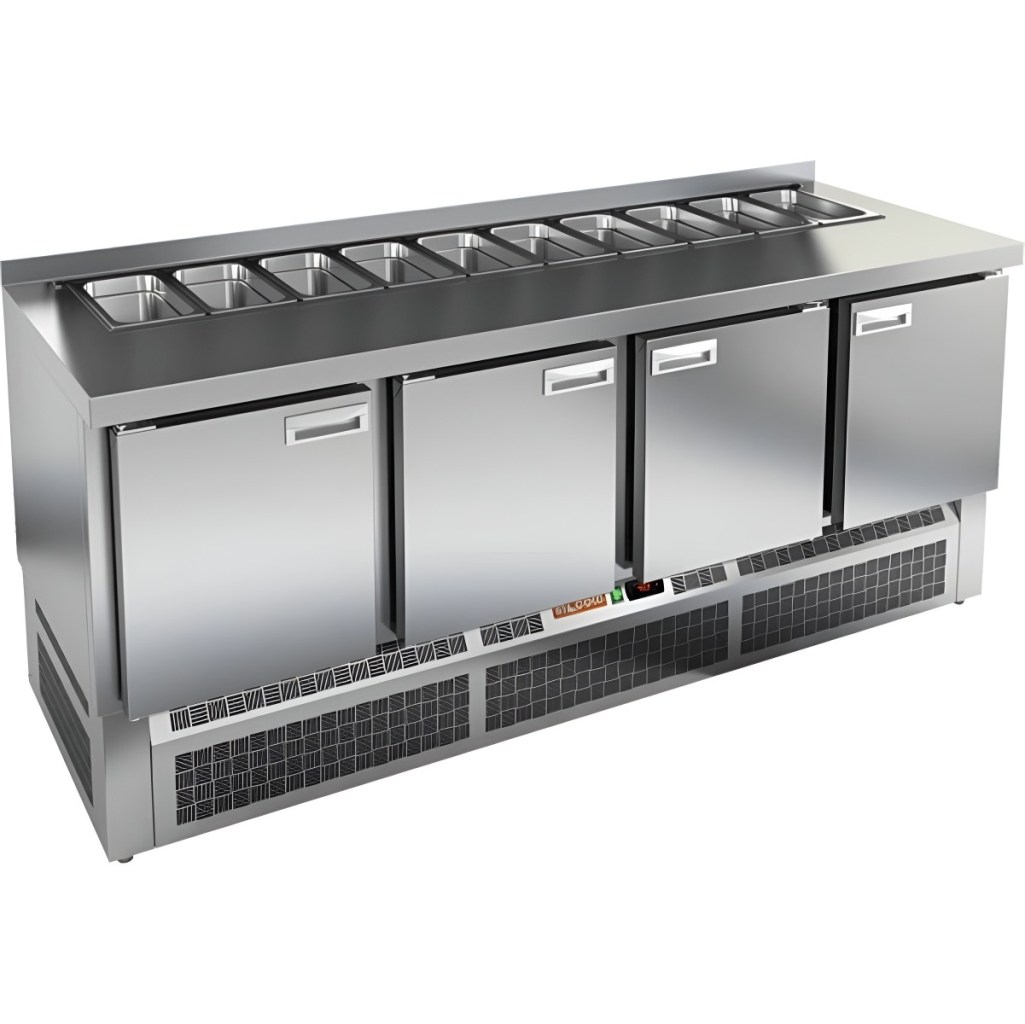 Каталог оборудования Холодильное оборудованиеСтолы охлаждаемыеСтолы холодильные для салатовСтол холодильный для салатов HiCold SLE1-1111SN (1/3) без крышки Стол холодильный для салатов HiCold SLE1-1111SN (1/3) без крышки Код товара: 064-546 Поделиться: WhatsAppTelegram 0 Цена по запросу Получить консультацию в WhatsApp Описание Характеристики Отзывы 0 Инструкции 2 Стол холодильный для салатов HiCold SLE1-1111SN (1/3) без крышки предназначен для предприятий общественного питания и торговли. Он позволяет хранить и обрабатывать ингредиенты для пиццы, салатов и других блюд, а также охлаждать и кратковременно хранить скоропортящиеся продукты и напитки. Модель совмещает рабочую поверхность и охлаждаемый объем, что обеспечивает удобство работы повара: все необходимые компоненты всегда под рукой. Корпус и столешница выполнены из нержавеющей стали, что гарантирует долговечность и простоту ухода. Особенности: Динамическая система охлаждения — равномерное распределение температуры по всему объему. Автоматическая оттайка — упрощает уход за оборудованием. Электронная панель управления — удобная настройка температуры и режимов работы. 4 вместительные внутренние полки формата GN 1/1 — оптимальное хранение ингредиентов. Автоматические доводчики дверей с фиксатором открытого положения — комфорт и безопасность работы. Легкозаменяемые магнитные уплотнители — простота обслуживания. Открытая агрегатная часть — облегчает доступ для обслуживания. Регулируемые по высоте ножки — адаптация к рабочей поверхности. Размер полки: 430×325 мм (GN 1/1) Максимальная глубина гастроемкостей: 100 мм Столешница с бортом, без крышки: толщина столешницы и теплоизоляции — 50 мм, высота борта — 50 мм HiCold SLE1-1111SN (1/3) без крышки — надежный и удобный стол для профессиональной кухни. Он обеспечивает эффективное охлаждение и хранение ингредиентов, а комбинированная рабочая поверхность с холодильным объемом упрощает работу повара, делая процесс приготовления быстрее и удобнее.Изображение товара, представленного на фото, может отличаться от его фактического вида. Показать все Габаритные размеры1970×700×800 ммДиапазон рабочей температурыот +2 до +10 °CРасположение агрегатаНижнее Материал столешницыНержавеющая Тип столаС дверьми Тип двериГлухая Объём430 лКоличество дверей4 штТип гастроемкостейGN 1/3 Размер полки430×325 ммНапряжение220 ВМощность0,46 кВтТип охлажденияДинамический Тип оттайкиАвтоматическая СтолешницаС бортом Вес нетто131 кгВес брутто185 кгБрендHicold Оставить отзыв Еще никто не оставил отзыв на этот товар Паспорт на HICOLD SLE1-1111SN (1/3).pdfДекларация о соответствии.pdf Ранее просмотрено Под заказ 212 481 ₽ Стол холодильный для салатов HiCold SL2-113SN (1/6) с крышкой