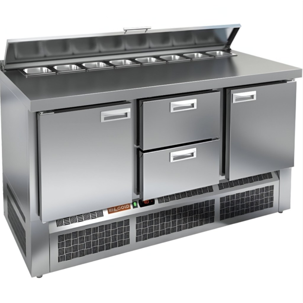 Модель сочетает в себе прочную рабочую поверхность и охлаждаемый внутренний объем, что упрощает процесс приготовления: все необходимые ингредиенты всегда под рукой. Корпус и столешница изготовлены из нержавеющей стали, устойчивой к воздействию влаги, механическим повреждениям и легко поддающейся очистке. Металлическая крышка защищает продукты от загрязнений и сохраняет их свежесть.