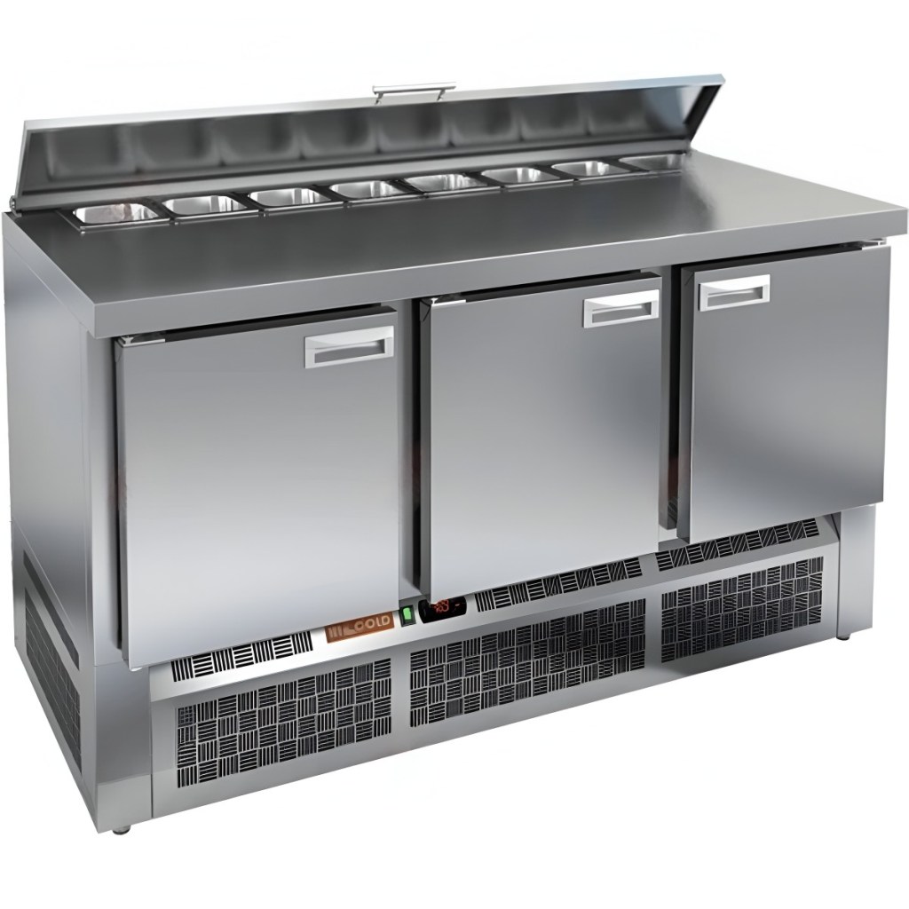 Каталог оборудования Холодильное оборудованиеСтолы охлаждаемыеСтолы холодильные для салатовСтол холодильный для салатов HiCold SLE2-111GN (1/6) О З с крышкой Стол холодильный для салатов HiCold SLE2-111GN (1/6) О З с крышкой Код товара: 064-869 Поделиться: WhatsAppTelegram СравнитьДобавить в КПВ избранное 0 152 451 ₽ В корзину 0 шт Под заказСамовывоз сегодня бесплатно Взять в кредит Купить в лизинг Получить консультацию в WhatsApp Описание Характеристики Отзывы 0 Инструкции 2 Стол холодильный для салатов HiCold SLE2-111GN (1/6) О З с крышкой предназначен для предприятий общественного питания и торговли. Он используется для хранения, охлаждения и обработки ингредиентов, применяемых при приготовлении салатов, пиццы, закусок и других блюд. Модель объединяет удобную рабочую поверхность и охлаждаемый отсек, позволяя повару иметь все необходимое под рукой. Конструкция выполнена из прочной нержавеющей стали, устойчивой к коррозии и легкой в уходе. Металлическая крышка защищает продукты от загрязнений и сохраняет их свежесть. Особенности модели: Электронная панель управления — точная настройка температуры и контроль за режимами работы. 3 вместительные внутренние полки — рациональное распределение хранения. Салат-бар вмещает 8 гастроемкостей — оптимальная организация ингредиентов. Автоматические доводчики дверей с фиксацией в открытом положении — удобно при загрузке и выгрузке продуктов. Магнитные уплотнители — легко заменяются, обеспечивая герметичность. Открытая агрегатная часть — упрощает техническое обслуживание. Регулируемые по высоте ножки — позволяют установить оборудование на любой поверхности. Максимальная глубина гастроемкостей — 100 мм — подходит для хранения различных типов продуктов. Задняя стенка из нержавеющей стали, включая агрегатный отсек — прочность и гигиеничность. Столешница толщиной 50 мм без борта — полноценная рабочая зона. Теплоизоляция толщиной 50 мм — сохраняет стабильный температурный режим и снижает энергозатраты. HiCold SLE2-111GN (1/6) О З с крышкой — это функциональный и надёжный салатный стол, сочетающий в себе удобство работы и эффективное охлаждение. Отличное решение для кухни с интенсивной нагрузкой. Изображение товара, представленного на фото, может отличаться от его фактического вида. Показать все Габаритные размеры1485×700×850 ммДиапазон рабочей температурыот +2 до +10 °CРасположение агрегатаНижнее Материал столешницыНержавеющая Тип столаС дверьми Тип двериГлухая Объём375 лКоличество дверей3 штТип гастроемкостейGN 1/6 Размер полки530×325 ммНапряжение220 ВМощность0,22 кВтТип охлажденияДинамическое Тип оттайкиАвтоматическая СтолешницаБез борта Габариты в упаковке1700×850×1080 ммВес нетто115 кгВес брутто160 кгБрендHicold Оставить отзыв Еще никто не оставил отзыв на этот товар Паспорт на HICOLD SLE2-111GN О З.pdfДекларация о соответствии.pdf Ранее просмотрено Под заказ 255 861 ₽ Стол холодильный для салатов HiCold SL2-222GN (1/6) без крышки Под заказ 239 391 ₽ Стол холодильный для салатов HiCold SLE1-222GN (1/3) О с крышкой Под заказ 197 722 ₽ Стол холодильный для салатов HiCold SL2-1111GN (1/6) О с крышкой Под заказ 260 092 ₽ Стол холодильный для салатов HiCold SL1-222GN (1/3) с крышкой Под заказ 149 302 ₽ Стол холодильный для салатов HiCold SLE2-111GN (1/6) О З без крышки Под заказ 320 392 ₽ Стол холодильный для салатов HiCold SL1-2222GN (1/3) с крышкой Под заказ 170 901 ₽ Стол холодильный для салатов HiCold SLE3-111GN полипропилен, без крышки