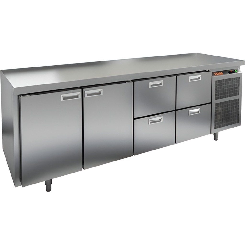 Каталог оборудования Холодильное оборудованиеСтолы охлаждаемыеСтолы холодильные среднетемпературныеСтол холодильный среднетемпературный HiCold GN 1122/TN О Стол холодильный среднетемпературный HiCold GN 1122/TN О Код товара: 065-459 Поделиться: WhatsAppTelegram СравнитьДобавить в КПВ избранное 0 228 591 ₽ В корзину 0 шт Под заказСамовывоз сегодня бесплатно Взять в кредит Купить в лизинг Получить консультацию в Max Описание Характеристики Отзывы 0 Инструкции 2 Стол холодильный среднетемпературный HiCold GN 1122/TN О предназначен для хранения продуктов и подготовки ингредиентов в заведениях общественного питания и торговли. Удобная электронная панель управления, прочный корпус и продуманная конструкция делают эту модель оптимальным выбором для профессиональной кухни. В комплект входят 2 полки размером 530×325 мм. Ключевые особенности: 2 распашные двери и 4 выдвижные секции — рациональная организация внутреннего пространства и быстрый доступ к содержимому. Электронная панель управления — интуитивное управление температурой. Автоматические доводчики дверей с фиксаторами открытого положения — удобно при частом использовании. Легкозаменяемые магнитные уплотнители — надёжная герметизация и лёгкое техническое обслуживание. Регулируемые по высоте ножки — устойчивость на любой поверхности. Корпус и столешница из нержавеющей стали — прочность, долговечность и соответствие санитарным требованиям. Столешница без борта, толщина 50 мм — увеличенная рабочая площадь, устойчивая к нагрузкам и механическому воздействию. Толщина теплоизоляции — 50 мм — отличная теплоизоляция и прочность. Устойчив к внешним условиям при температуре окружающей среды от 12 до 37 °C. HiCold GN 1122/TN О — это надёжный и функциональный холодильный стол, разработанный для интенсивной профессиональной эксплуатации. Удачное сочетание дверей и выдвижных секций делает его универсальным решением для хранения различных категорий продуктов, обеспечивая удобство работы и соблюдение температурного режима. Изображение товара, представленного на фото, может отличаться от его фактического вида. Показать все Габаритные размеры2280×700×850 ммДиапазон рабочей температурыот -2 до +10 °CРасположение агрегатаБоковое Материал столешницыНержавеющая Тип столаС дверьми и ящиками Тип двериГлухая Объём660 лКоличество дверей2 штКоличество полок2 штКоличество ящиков4 штРазмер полки530×325 ммНапряжение220 ВМощность0,48 кВтТип охлажденияДинамический Тип оттайкиАвтоматическая СтолешницаБез борта Габариты в упаковке2420×850×1000 ммВес нетто150 кгВес брутто190 кгБрендHicoldВсе холодильные столы HicoldВсе нержавеющие холодильные столы Все холодильные столы без борта Оставить отзыв Еще никто не оставил отзыв на этот товар Паспорт на HICOLD GN 1122/TN О.pdfДекларация о соответствии.pdf Похожие товары Перейти в каталог Под заказ 197 991 ₽ Стол холодильный среднетемпературный HiCold GNG 1111 HT В наличии 139 401 ₽ Стол холодильный среднетемпературный HiCold GN 1111 BR2 TN В наличии 113 121 ₽ Стол холодильный среднетемпературный HiCold GN 1111/TN W В наличии 119 067 ₽ Стол холодильный среднетемпературный Polair TM4GN-GС С этим товаром покупают Под заказ 130 257 ₽ Шкаф комбинированный Carboma RF 700 Под заказ 68 464 ₽ Витрина холодильная для ингредиентов HICOLD VRX 1600 1/3 Ранее просмотрено Под заказ 217 251 ₽ Стол холодильный среднетемпературный HiCold GN 122 BR3 TN Под заказ 218 691 ₽ Стол холодильный среднетемпе