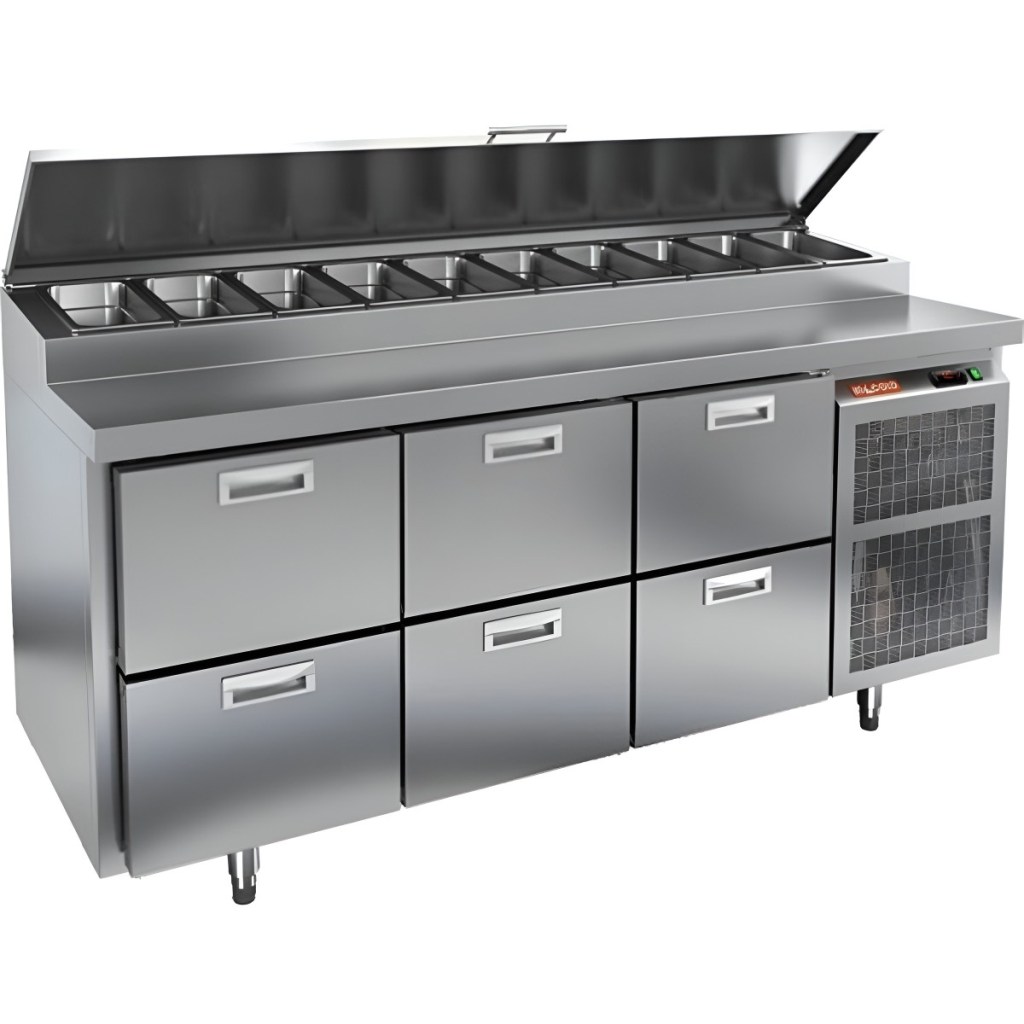 Каталог оборудования Холодильное оборудованиеСтолы охлаждаемыеСтолы холодильные для пиццыСтол холодильный для пиццы HiCold PZ1-222GN (1/3H) Стол холодильный для пиццы HiCold PZ1-222GN (1/3H) Код товара: 064-710 Поделиться: WhatsAppTelegram СравнитьДобавить в КПВ избранное 0 306 171 ₽ В корзину 0 шт Под заказСамовывоз сегодня бесплатно Взять в кредит Купить в лизинг Получить консультацию в WhatsApp Описание Характеристики Отзывы 0 Стол холодильный для пиццы HiCold PZ1-222GN (1/3H) — профессиональное оборудование для предприятий общественного питания и торговли. Он сочетает рабочую поверхность для раскатки теста и подготовки ингредиентов с охлаждаемым блоком для кратковременного хранения скоропортящихся продуктов и напитков. Такое решение обеспечивает максимальное удобство — все необходимые компоненты всегда находятся под рукой. Корпус и столешница выполнены из нержавеющей стали, что гарантирует долговечность, устойчивость к повреждениям и лёгкость ухода. Основные особенности: Нержавеющая столешница и корпус — прочность, гигиеничность и лёгкость очистки Динамическая система охлаждения — равномерное распределение холода Автоматическая оттайка — стабильная работа без образования наледи Электронная панель управления — точная настройка температуры 6 выдвижных ящиков — удобная организация внутреннего пространства без дверцы Автоматические доводчики ящиков — комфорт при работе Легкозаменяемые магнитные уплотнители — поддержание герметичности Открытая агрегатная часть — лёгкий доступ для обслуживания Регулируемые по высоте ножки — установка на неровных поверхностях Максимальная глубина гастроёмкостей: 100 мм Глубина рабочей поверхности: 324 мм Толщина столешницы и теплоизоляции: 50 мм Вместимость салат-бара: до 10 гастроёмкостей Стол холодильный HiCold PZ1-222GN (1/3H) — надёжный и функциональный холодильный стол для пиццы и салатов. Полное отсутствие дверцы и продуманная система хранения обеспечивают быстрый доступ к ингредиентам, удобство эксплуатации и высокую производительность на профессиональной кухне.Изображение товара, представленного на фото, может отличаться от его фактического вида. Показать все Габаритные размеры1835×700×1000 ммДиапазон рабочей температурыот +2 до +10 °CРасположение агрегатаБоковое Материал столешницыНержавеющая Тип столаС ящиками Объём505 лТип гастроемкостейGN 1/3 Количество ящиков6 штНапряжение220 ВМощность0,5 кВтТип охлажденияДинамическое Тип оттайкиАвтоматическая Габариты в упаковке2000×850×1140 ммВес нетто172 кгВес брутто200 кгБрендHicoldВсе холодильные столы для пиццы HicoldВсе нержавеющие холодильные столы для пиццы Оставить отзыв Еще никто не оставил отзыв на этот товар Ранее просмотрено Под заказ 260 272 ₽ Стол холодильный для пиццы HiCold PZ1-113GN (1/3H)