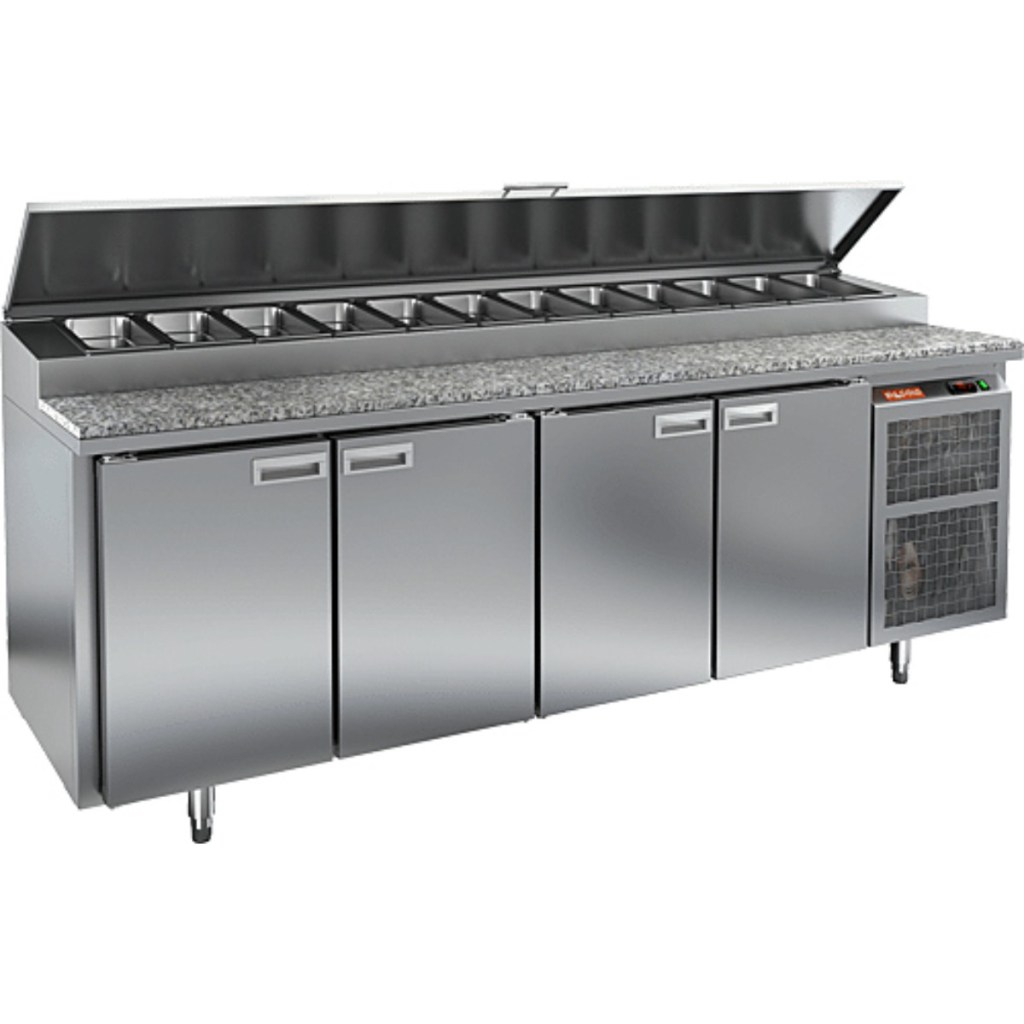 Каталог оборудования Холодильное оборудованиеСтолы охлаждаемыеСтолы холодильные для пиццыСтол холодильный для пиццы HiCold PZ2-1111/GN (1/6H) камень (R290) Стол холодильный для пиццы HiCold PZ2-1111/GN (1/6H) камень (R290) Код товара: 062-056 Поделиться: WhatsAppTelegram СравнитьДобавить в КПВ избранное 0 290 061 ₽ В корзину 0 шт Под заказСамовывоз сегодня бесплатно Взять в кредит Купить в лизинг Получить консультацию в WhatsApp Описание Характеристики Отзывы 0 Инструкции 2 Стол холодильный для пиццы HiCold PZ2-1111/GN (1/6H) камень (R290) предназначен для предприятий общественного питания и торговли. Он используется для раскатки теста, обработки ингредиентов для пиццы, салатов и других блюд, а также для охлаждения и кратковременного хранения скоропортящихся продуктов и напитков. Благодаря объединению рабочей поверхности и охлаждаемого объема, модель обеспечивает удобство работы, позволяя держать все необходимые компоненты всегда под рукой. Корпус изготовлен из нержавеющей стали, что гарантирует долговечность и простоту ухода. Рабочая столешница выполнена из гранита, что обеспечивает прочность и комфорт при работе. Металлическая крышка защищает продукты от загрязнений и сохраняет их свежесть. Особенности: Электронная панель управления для точной настройки режима охлаждения; Четыре вместительные внутренние полки формата GN 1/1; Вместимость до 13 гастроемкостей в салат-баре; Автоматические доводчики дверей с фиксацией открытого положения; Легкозаменяемые магнитные уплотнители для поддержания герметичности; Открытая агрегатная часть для удобного технического обслуживания; Регулируемые по высоте ножки для устойчивости на неровной поверхности; Максимальная глубина гастроемкостей — 100 мм; Глубина рабочей поверхности — 486 мм; Толщина столешницы и теплоизоляции — по 50 мм, что способствует эффективному сохранению холода. Hicold PZ2-1111/GN (1/6H) камень (R290) — удобный и функциональный стол, который объединяет рабочую поверхность и охлаждаемую камеру, что упрощает и ускоряет работу на профессиональной кухне.Изображение товара, представленного на фото, может отличаться от его фактического вида. Показать все Габаритные размеры2280×700×1000 ммДиапазон рабочей температурыот +2 до +10 °CРасположение агрегатаБоковое Материал столешницыГранитная Тип столаС дверьми Тип двериГлухая Объём660 лТип гастроемкостейGN 1/6 Количество дверей4 штРазмер полки530×325 ммНапряжение220 ВМощность0,48 кВтТип охлажденияДинамическое Тип оттайкиАвтоматическая ХладагентR290 Габариты в упаковке2420×850×1080 ммВес нетто208 кгВес брутто245 кгБрендHicoldВсе холодильные столы для пиццы HicoldВсе нержавеющие холодильные столы для пиццы Оставить отзыв Еще никто не оставил отзыв на этот товар Паспорт на HICOLD PZ2-1111GN.pdfДекларация о соответствии.pdf Ранее просмотрено Под заказ 174 016 ₽ Витрина холодильная среднетемпературная Premier ЯНТАРЬ ВСУП1-0,63ТУ/Яв-2,3