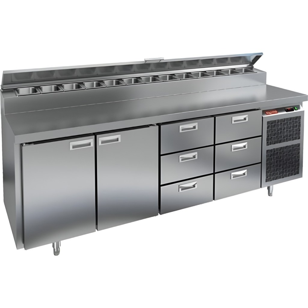 Каталог оборудования Холодильное оборудованиеСтолы охлаждаемыеСтолы холодильные для пиццыСтол холодильный для пиццы HiCold PZ2-1133GN (1/6) Стол холодильный для пиццы HiCold PZ2-1133GN (1/6) Код товара: 064-759 Поделиться: WhatsAppTelegram СравнитьДобавить в КПВ избранное 0 342 442 ₽ В корзину 0 шт Под заказСамовывоз сегодня бесплатно Взять в кредит Купить в лизинг Получить консультацию в Max Описание Характеристики Отзывы 0 Стол холодильный для пиццы HiCold PZ2-1133GN (1/6) предназначен для кухонь и предприятий общественного питания. Он используется для раскатки теста, подготовки ингредиентов для пиццы, салатов и других блюд, а также для охлаждения и кратковременного хранения скоропортящихся продуктов. Модель совмещает нержавеющую рабочую поверхность и охлаждаемый отсек с 2 дверьми и 6 ящиками, обеспечивая удобный доступ к ингредиентам и эффективное хранение. Особенности: Динамическая система охлаждения для равномерного поддержания температуры Автоматическая оттайка для удобного обслуживания Электронная панель управления для точной настройки параметров Вместительная внутренняя полка формата GN 1/1 (размер 530×325 мм) 2 двери и 6 вместительных ящика для хранения ингредиентов Автоматические доводчики дверей с фиксатором открытого положения Легкозаменяемые магнитные уплотнители для герметичности Открытая агрегатная часть для легкого доступа к компонентам Регулируемые по высоте ножки для устойчивости Нержавеющая столешница глубиной 486 мм и толщиной 50 мм — устойчива к коррозии, легко моется и гигиенична Толщина теплоизоляции: 50 мм Максимальная глубина гастроемкостей: 100 мм Вместимость салат-бара: 13 гастроемкости Стол холодильный HiCold PZ2-1133GN (1/6) — это надежный и функциональный стол для пиццы. Он объединяет рабочую поверхность и охлаждаемый отсек, упрощает хранение и подготовку ингредиентов, обеспечивает удобство работы повара и соответствует стандартам профессиональной кухни. Изображение товара, представленного на фото, может отличаться от его фактического вида. Показать все Габаритные размеры2280×700×1000 ммДиапазон рабочей температурыот +2 до +10 °CРасположение агрегатаБоковое Материал столешницыНержавеющая Тип столаС дверьми и ящиками Тип двериГлухая Объём660 лТип гастроемкостейGN 1/6 Количество дверей2 штКоличество ящиков6 штРазмер полки530×325 ммНапряжение220 ВМощность0,5 кВтТип охлажденияДинамическое Тип оттайкиАвтоматическая Габариты в упаковке2420×850×1080 ммВес нетто208 кгВес брутто240 кгБрендHicoldВсе холодильные столы для пиццы HicoldВсе нержавеющие холодильные столы для пиццы Оставить отзыв Еще никто не оставил отзыв на этот товар Ранее просмотрено Под заказ 214 642 ₽ Стол холодильный для пиццы HiCold PZ1-12GN (1/3) Под заказ 306 171 ₽ Стол холодильный для пиццы HiCold PZ2-222GN (1/6) Цена по запросу Витрина морозильная Иней LIDA-BRIZ М 2,0 Под заказ 109 779 ₽ Витрина морозильная CRYSPI Octava M 1800 Под заказ 223 577 ₽ Стол холодильный для пиццы Polair TMi3GNpizza-G В наличии 65 994 ₽ Витрина холодильная МХМ Илеть ВХС-1,2 статика В наличии 184 042 ₽ Стол холодильный для пиццы HiCold PZ2-11/GN (1/6H)