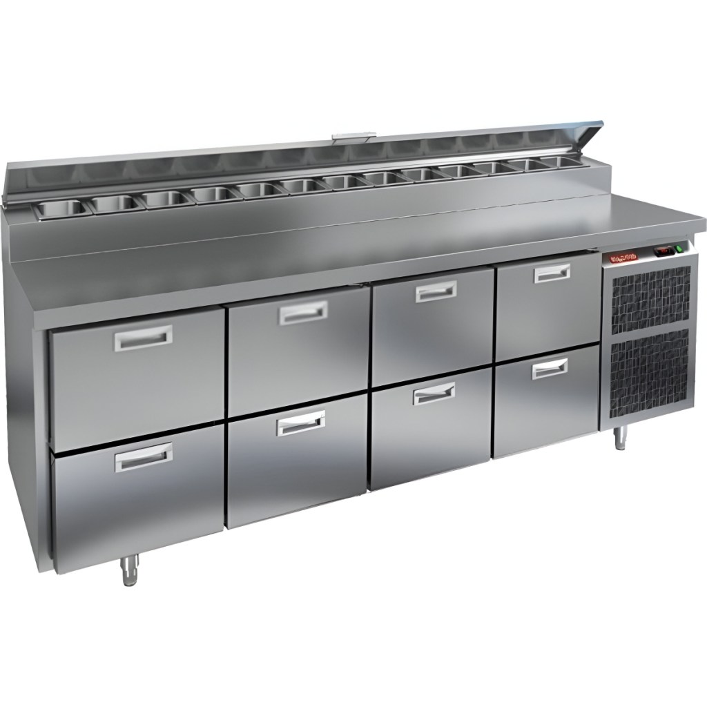 Каталог оборудования Холодильное оборудованиеСтолы охлаждаемыеСтолы холодильные для пиццыСтол холодильный для пиццы HiCold PZ2-2222GN (1/6) Стол холодильный для пиццы HiCold PZ2-2222GN (1/6) Код товара: 064-773 Поделиться: WhatsAppTelegram СравнитьДобавить в КПВ избранное 0 373 042 ₽ В корзину 0 шт Под заказСамовывоз сегодня бесплатно Взять в кредит Купить в лизинг Получить консультацию в WhatsApp Описание Характеристики Отзывы 0 Стол холодильный для пиццы HiCold PZ2-2222GN (1/6) предназначен для кухонь и предприятий общественного питания. Он используется для раскатки теста, подготовки ингредиентов для пиццы, салатов и других блюд, а также для охлаждения и кратковременного хранения скоропортящихся продуктов. Модель совмещает нержавеющую рабочую поверхность и охлаждаемый отсек с 8 выдвижными ящиками, обеспечивая удобный доступ к ингредиентам и эффективное хранение без дверей. Особенности: Динамическая система охлаждения для равномерного поддержания температуры Автоматическая оттайка для удобного обслуживания Электронная панель управления для точной настройки параметров Вместительная внутренняя полка формата GN 1/1 (размер 530×325 мм) 8 выдвижных ящиков для хранения ингредиентов Легкозаменяемые магнитные уплотнители для герметичности Открытая агрегатная часть для легкого доступа к компонентам Регулируемые по высоте ножки для устойчивости Нержавеющая столешница глубиной 486 мм и толщиной 50 мм — устойчива к коррозии, легко моется и гигиенична Толщина теплоизоляции: 50 мм Максимальная глубина гастроемкостей: 100 мм Вместимость салат-бара: 13 гастроемкости Стол холодильный HiCold PZ2-2222GN (1/6) — это надежное и удобное решение для профессиональной кухни. Он обеспечивает легкий доступ к ингредиентам, упрощает хранение и подготовку продуктов и полностью соответствует стандартам предприятий общественного питания.Изображение товара, представленного на фото, может отличаться от его фактического вида. Показать все Габаритные размеры2280×700×1000 ммДиапазон рабочей температурыот +2 до +10 °CРасположение агрегатаБоковое Материал столешницыНержавеющая Тип столаС ящиками Объём660 лТип гастроемкостейGN 1/6 Количество ящиков8 штНапряжение220 ВМощность0,5 кВтТип охлажденияДинамическое Тип оттайкиАвтоматическая Габариты в упаковке2420×850×1080 ммВес нетто208 кгВес брутто240 кгБрендHicoldВсе холодильные столы для пиццы HicoldВсе нержавеющие холодильные столы для пиццы Оставить отзыв Еще никто не оставил отзыв на этот товар Ранее просмотрено Под заказ 242 721 ₽ Стол холодильный для пиццы HiCold PZE2-1111/GN (1/6) М Под заказ 434 242 ₽ Стол холодильный для пиццы HiCold PZ2-3333GN (1/6) Под заказ 306 171 ₽ Стол холодильный для пиццы HiCold PZ1-222GN (1/3H) Под заказ 260 272 ₽ Стол холодильный для пиццы HiCold PZ1-113GN (1/3H)