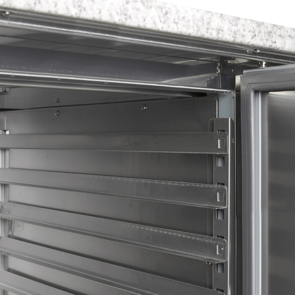 Каталог оборудования Холодильное оборудованиеСтолы охлаждаемыеСтолы холодильные для пиццыСтол холодильный для пиццы TEFCOLD PT1365 + VK33-140 Стол холодильный для пиццы TEFCOLD PT1365 + VK33-140 Код товара: 010-225 Поделиться: WhatsAppTelegram СравнитьДобавить в КПВ избранное 0 258 953 ₽ В корзину 0 шт Под заказСамовывоз сегодня бесплатно Взять в кредит Купить в лизинг Получить консультацию в WhatsApp Описание Характеристики Отзывы 0 Инструкции 2 Стол для пиццы TEFCOLD PT1365 — профессиональное оборудование, предназначенное для обработки ингредиентов, охлаждения и кратковременного хранения продуктов на предприятиях общественного питания и торговли. Корпус и внутренняя обшивка выполнены из нержавеющей стали AISI 304, обеспечивая долговечность, гигиеничность и простоту ухода. Особенности модели: Динамическое охлаждение — равномерное распределение температуры по всему объёму Автоматическое размораживание — поддержание стабильной работы без образования наледи Электронный термостат и градусник — точное регулирование температуры Хладагент R600a, подзарядка — 0,11 кг Самозакрывающиеся двери — герметичность и сохранение холода 3 полки — удобная организация внутреннего пространства Регулируемые по высоте ножки — устойчивость на неровных поверхностях Климатический класс 4 — работа при температуре окружающей среды до +30 °C Полезный объём: 368 л Внутренние размеры: 1295×515×500 мм Энергопотребление: 3 кВт/сутки Уровень шума: 42 дБ TEFCOLD PT1365 — надёжный и функциональный холодильный стол для профессиональных кухонь, пиццерий и предприятий общественного питания. Модель сочетает удобную рабочую поверхность, вместительное охлаждаемое пространство и современную систему управления температурой, обеспечивая сохранность ингредиентов и комфорт в работе. Изображение товара, представленного на фото, может отличаться от его фактического вида. Показать все Габаритные размеры1365×700×1457 ммДиапазон рабочей температурыот +2 до +10 °CРасположение агрегатаНижнее Материал столешницыГранитная Тип столаС дверьми Тип двериГлухая Общий объем400 лПолезный объем368 лТип гастроемкостейGN1/1 Количество дверей3 штКлиматический класс4 Напряжение220 ВРасход электроэнергии в сутки3,15 кВт/сутТип охлажденияДинамическое Тип оттайкиАвтоматическая ХладагентR600a Уровень шума42 дБГабариты в упаковке1440×770×1510 ммВес нетто210 кгВес брутто235 кгБрендTefcold Оставить отзыв Еще никто не оставил отзыв на этот товар Брошюра на TEFCOLD PT1365-I.pdfИнструкция на TEFCOLD PT1365-I.pdf Похожие товары Перейти в каталог Под заказ 197 749 ₽ Стол холодильный для пиццы TEFCOLD PT930 Под заказ 164 643 ₽ Стол холодильный для пиццы Abat СХС-80-01П 2 двери нерж. Под заказ 324 250 ₽ Стол холодильный для пиццы TEFCOLD PT1200 + VK38-150 С этим товаром покупают Под заказ 201 448 ₽ Шкаф морозильный Abat ШХн-1,4-02 Ранее просмотрено Под заказ 129 728 ₽ Откатная холодильная дверь Север НТ-ОХД 2000*1860/80 Цена по запросу Витрина холодильная Иней LIDA-LOTUS SU 1,8