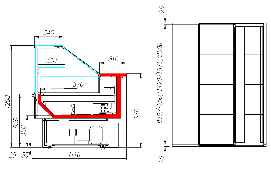Боковины не поставляются в комплекте и продаются отдельно. Отдельностоящие модели приобретаются только вместе с боковинами. При установке нескольких витрин с одинаковым температурным режимом достаточно заказать 2 боковины на всю линию.