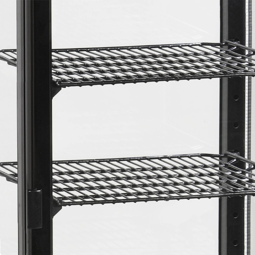 Витрина оснащена стеклянной дверью с двойным стеклом с 4-х сторон, внутренней LED-подсветкой, градусником, 3 регулируемыми полками-решетками и регулируемыми ножками, что обеспечивает удобство размещения продукции и контроль температуры. Электронный термостат поддерживает точное охлаждение.